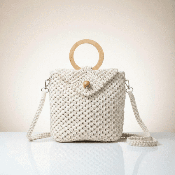 Wooden Ring: 9 × 9 cm | Material: 100% Cotton Yarn | Folder Width: 19.5 cm | Folder Side: 6.5 cm | Folder Length: 14.5 cm | Bag Width: 24.5 cm | Bag Length: 19.5 cm