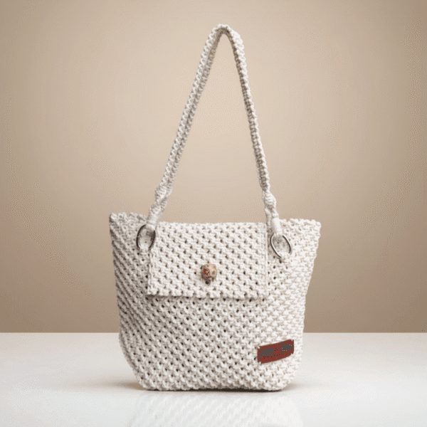 Material: 100% Cotton Yarn | Handle Size: 84 cm | Flap Length: 8.5 cm | Flap Width: 8.5 cm | Bag Body: 27 cm | Bag Length: 23 cm